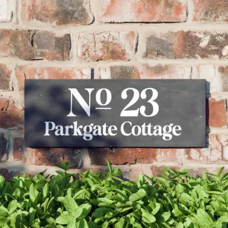 Designed to be the perfect aesthetic match for the brickwork outside a property, natural slate signs and slate door numbers carry the name or number of a residence in a distinctive manner, giving the exterior of your address that touch of class. They are also suitable for the garden, and outbuildings that require signage, as well as offices and commercial sites. Slate house numbers can also help easily direct people who need to find your property easily, including the postman - gone are the days of misplaced mail when you choose your new slate door number! If you want to be extra safe, choose from our slate range of large house signs to make an even bigger impact!