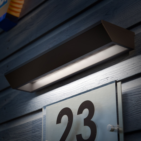 Illuminate your house sign effortlessly with the Nova Solar Light, specifically designed to provide optimal lighting for house signs at night. With a sophisticated matte black finish and a discreet 28cm width, the Nova Solar Light seamlessly blends with any home exterior.